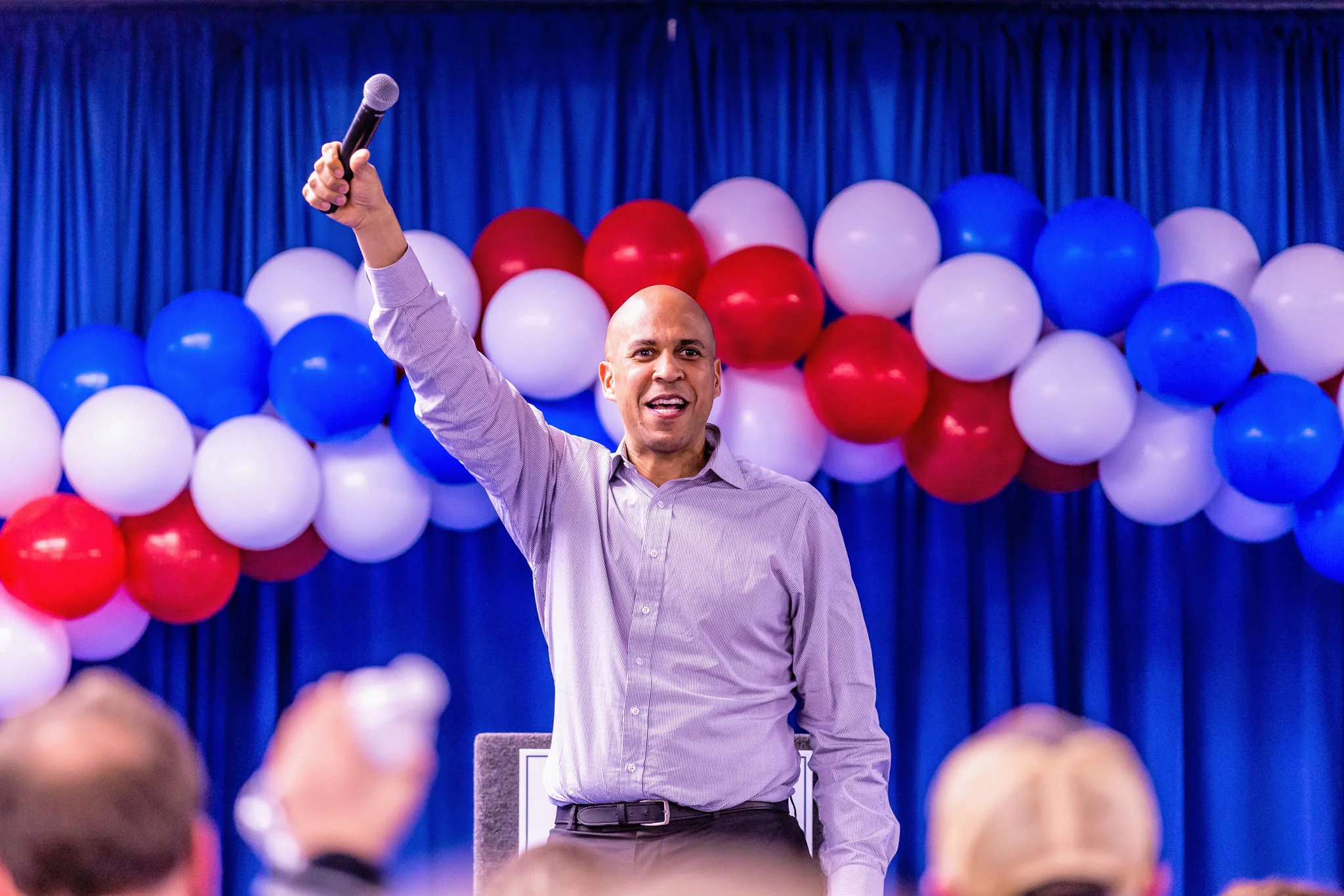 Senator Cory Booker addresses the crowd during a Democratic rally held in New Jersey
